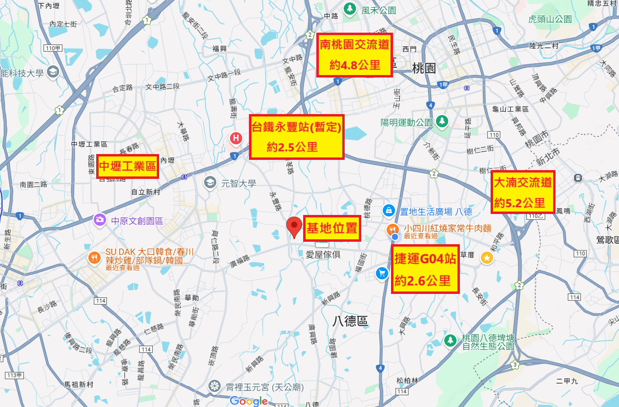 - 交通便利:距南桃園、大湳交流道約5公里。
